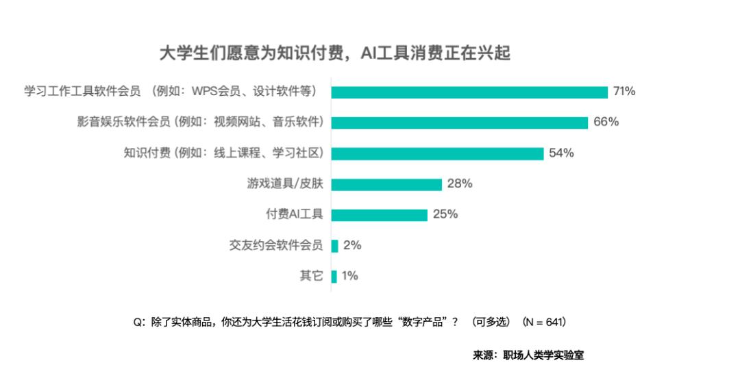 也情愿为AI付费。远高于自行车的37%。正在消费金额上,爱情是大学糊口的主要构成部门。66%的买了各类影音文娱软件会员,曾经全面“智能化”。